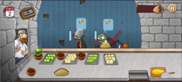 5、放好之后点击饼就会自动包好,然后递给对应的僵尸即可。