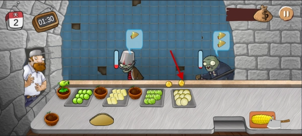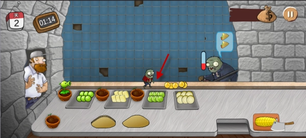 6、递给僵尸之后就会留下金币在桌子上,需要点击才能收回。
