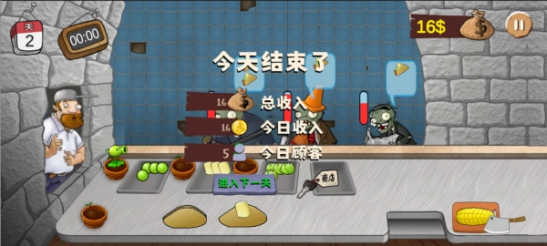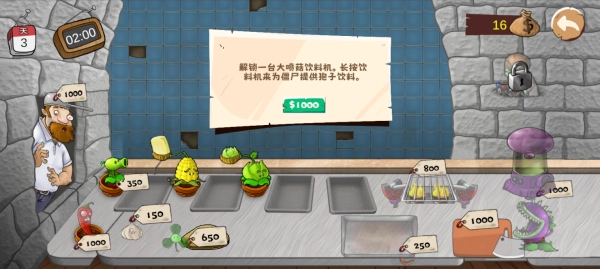 2、通过不断的经营赚钱就能够解锁更多的植物,这样就能够让制作的效率更高,一天也就能够招待更多的僵尸了。