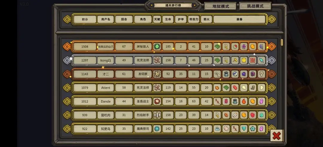 3.挑战模式:每天提供不同的诅咒和角色组合,通关积分同样记录在全球排行榜上,让你的每一天都充满挑战。