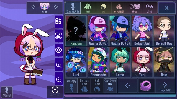 2、每个卡通角色都能自定义一下,可以不断调整角色的眼睛、眉毛等属性,诸多服装更是可以灵活搭配。