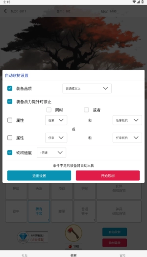 4、开局就能直接开启自动砍树了,并且还能设置砍树的速度,最高有100倍速,超级爽!