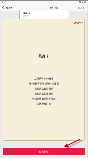 5、游戏中点击免费领取终身卡,这样每5分钟就能领取一次648奖励了。