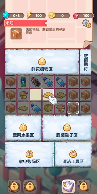 商品区域:大部分商品区初始为灰色,表示不可移动,随着游戏进度会解锁。