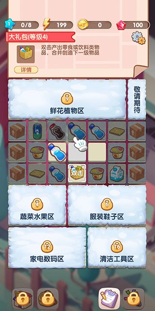 获取礼包:点击礼包产出零食或饮料。