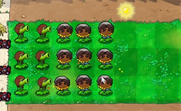 2、当然也能去种植医生向日葵,不仅可以产生阳光,还能恢复附件植物血量,可以放在后面几排。