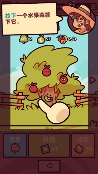 简单操作:点击果树并向下拉动,就能轻松摘取水果。