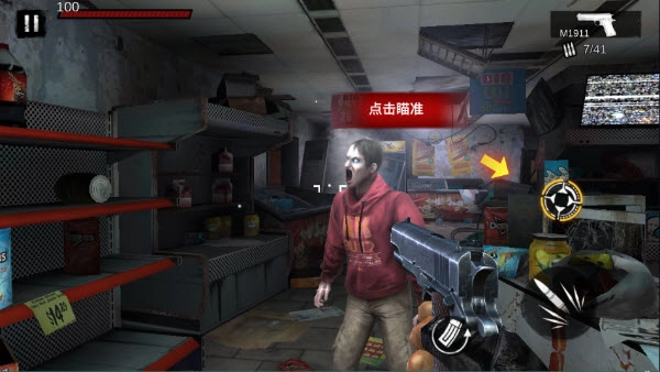 4、点击瞄准后可以更好的瞄准僵尸的弱点部位。