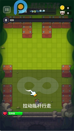 2、玩家可以通过虚拟摇杆控制角色移动,一直往前走就行。