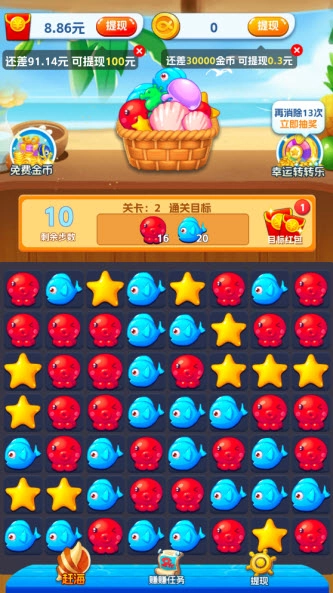 赶海成首富是一款经典三消玩法的休闲益智游戏,游戏以海边生物为主题,把传统三消的方块替换成了海马、贝壳等一个个可爱的小动物。玩家只要将三个或三个以上相同的动物连接起来就能完成消除,玩法简单易懂,新老玩家都能轻松快速上手,喜欢这类游戏的玩家快来试试吧。