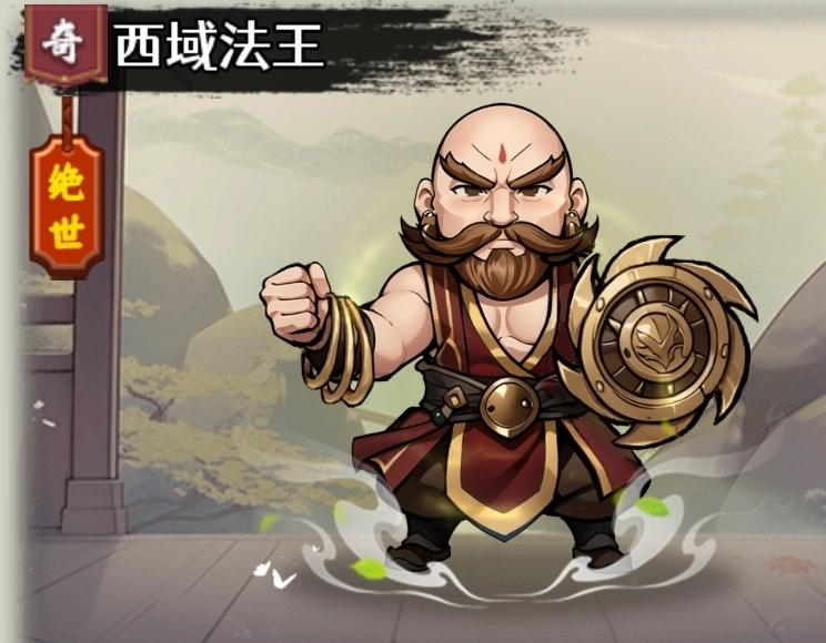 金轮镇魂(主动技):怒气达到100%时释放,对本层敌人造成310%攻击力的伤害,提高本层友方15%的破甲抵抗,持续7秒。