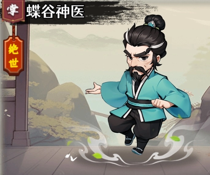 毒雾山谷(主动技):怒气达到100%时释放,全体友方回复蝶谷神医500%攻击力的血量,增加15%的暴击抵抗,持续5秒。
