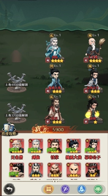 阵容玩法:郭大侠优先升至700级解锁全部技能,帮助前期快速推图获取更高的挂机奖励。风轻杨和慕容的怒气技能,均能对全体敌人造成不俗的伤害,也是推图的一把好手。配合胡菁牛的全体回血,续航也不是问题。