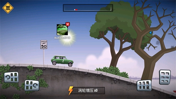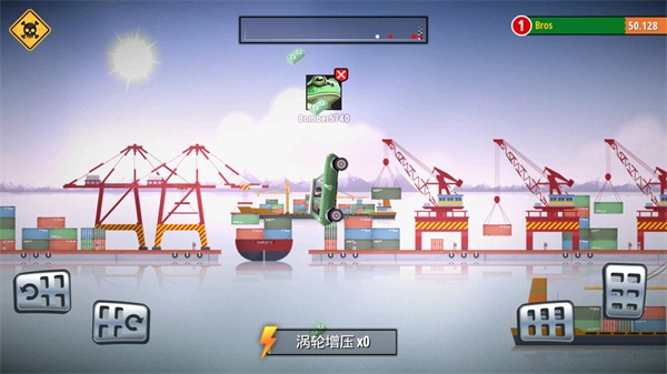 2、左下角的两个按键可以直接转动车子,就能做出不同的特技,这样可以增加涡轮增压,就能提升车子移动速度。
