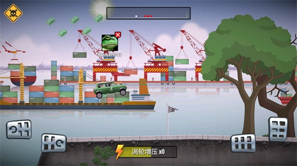 4、在右侧向上滑动,就能让车子跳跃起来,自然可以避开很多障碍物。
