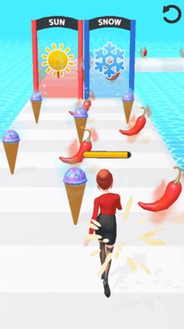 双属性玩法:玩家可以选择冰属性或火属性的角色,收集与角色属性对应的辣椒或冰淇淋。例如,选择火属性角色时,需要收集辣椒。