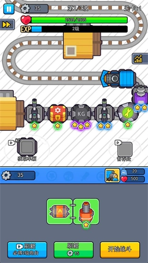 2、进入关卡后玩家需要将炮塔放在火车车厢上,相同的炮塔可以合并来提升等级。