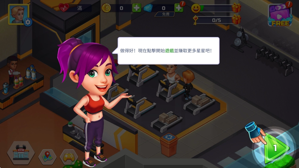快乐健身是一款围绕健身房经营展开的模拟管理游戏,玩家将以全能健身中心管理者的身份,从无到有地构建专属于自己的健身帝国。游戏巧妙融合了设备升级、员工培训、会员服务等丰富多元的经营元素,凭借明快的卡通美术风格与简易上手的操作模式,让玩家在指尖之间就能领略从简陋小场馆逐步发展为顶级健身会所的成长乐趣。