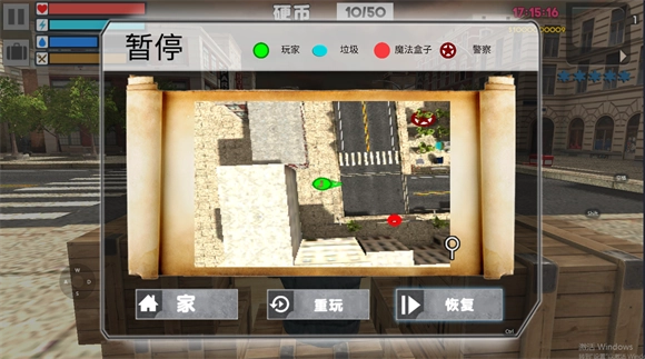 1、玩家需要在城市街道上狩猎和探索垃圾,寻找生存所需的物品。