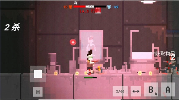 进入游戏界面后,能看到以下按键:B键对应翻滚动作,A键用于发起攻击,P键可获取更优质的武器,M键则是用来调出功能界面的。