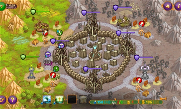 3、游戏中有五种类型的小队和三种类型的据点,玩家可以通过建造金矿和农场来增强自己的经济实力,以及建造方尖碑来增加法力。