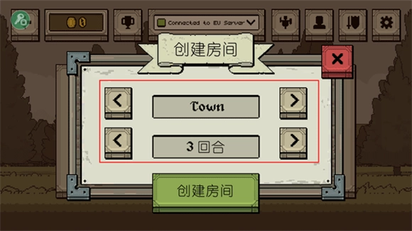 2、创建房间:创建房间就是选择战斗的地方和回合制方式,然后点击创建按钮即可。