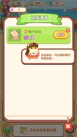 5、通过游玩小游戏可以获得研发点,可以用于研发新菜。