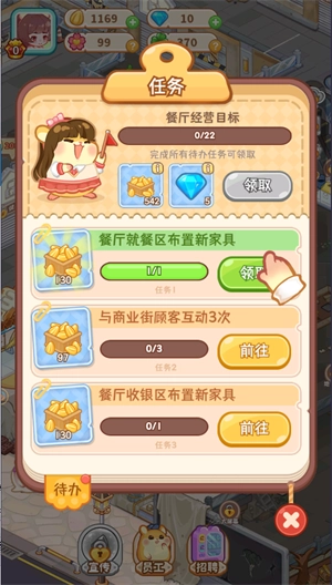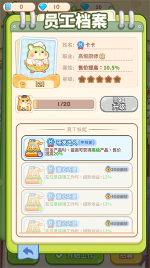 2、管理一群可爱的员工,包括服务员鼠、主管鼠和店长鼠,当然,还有那个调皮捣蛋的咖啡师。