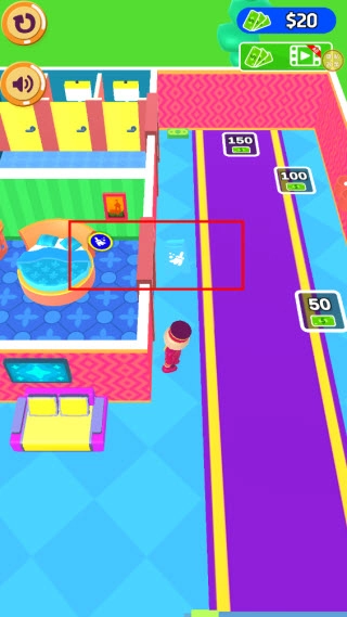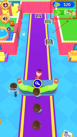 2、观看视频广告来获取更多的金钱,金钱可以解锁新的区域以及道具和设施等。