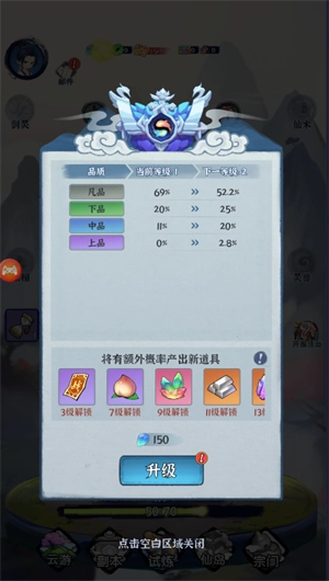 1、修仙与放置结合:玩家可以在轻松的放置玩法中体验修仙的过程,不需要繁琐的操作就能让角色成长。