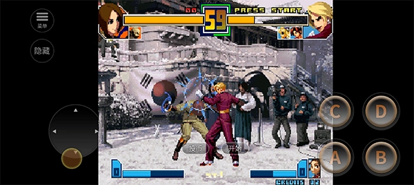 2、右边四个键位分别是轻拳【A】、轻腿【B】、重拳【C】、重腿【D】;
