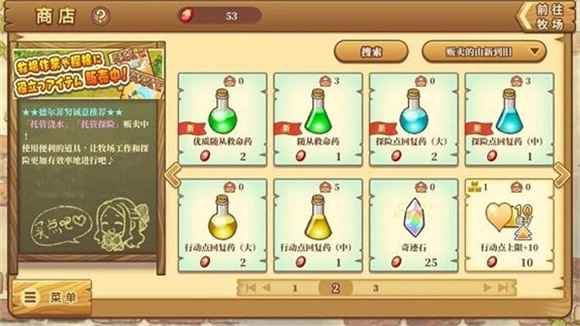 3、行动力和探险点:行动力和仓库一样让人头秃,永远不够。前期会给很多瓶子,后期掉落就比较少了,一般只会在个别任务完成后或者探索三个宝箱完成后会给,任务和宝箱一般也都是给10点的小瓶,大瓶是需要进商店买的,看起来挺便宜的,但是用起来真的挺费的,不建议用石头买,石头最好还是攒起来扩仓扩地!