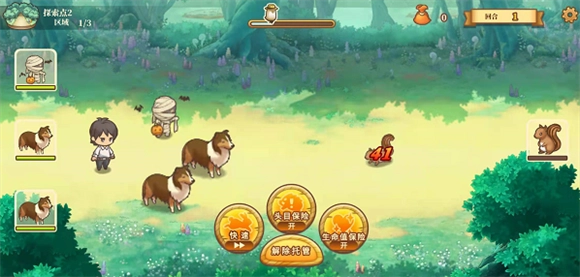 6、点击出发,前往无人岛屿后,即可展开探索,探索有时会遇到神秘的宝物,大赚一笔,有时会遇到危险的野生生物,当遇到危险的野生生物后,就到了随从出场的时候,赶走野生生物后,可随机获得野生生物遗留的材料。