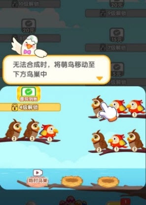 3、合成的小鸟数量越多可以获得的红包越丰富,游戏中的所有红包全部都是能提现的。