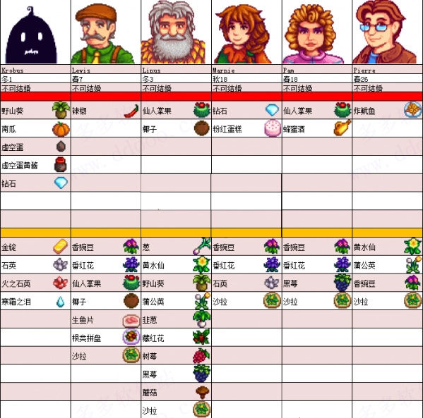 星露谷物语各角色喜好图