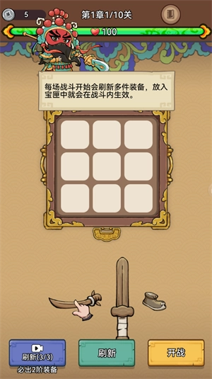 1、每场战斗开始时会刷新出多件装备,将这些装备放入宝匣后,就能在战斗过程中发挥作用。