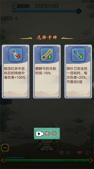 4、升级之后可以从三种强化卡中选择一种来提升自己