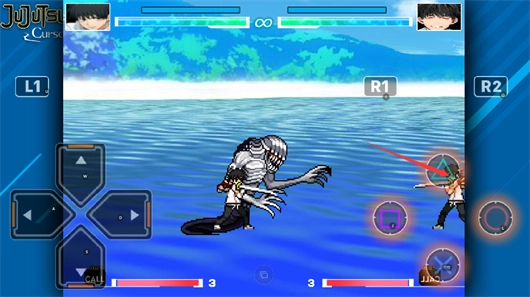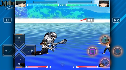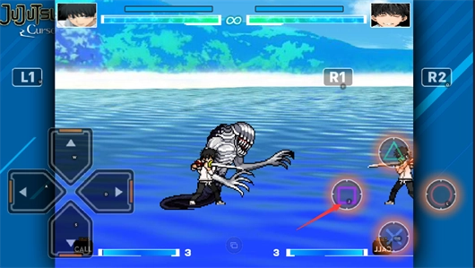 8、右边的R2为大招,能造成大量伤害,和方向键进行搭配能打出不同的效果