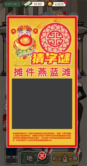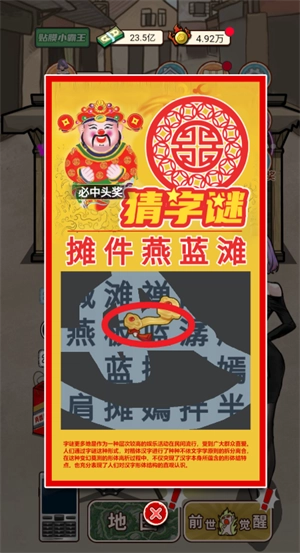 1、点击地上的字谜开始猜字谜活动,点击左边的财神元宝,不断点击,触发隐藏彩蛋