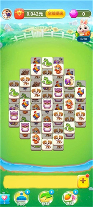 1、消消乐玩法:玩家需匹配并消除相同种类的动物方块,以此达成关卡设定的目标。