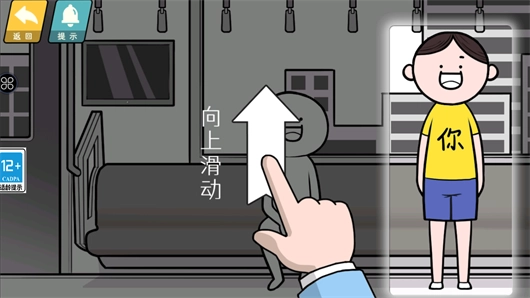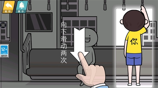 4、主人公抓住把手之后向下滑动两次