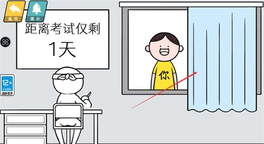 1、将窗帘向左滑动,让学生能安心复习,这样就能过关了。
