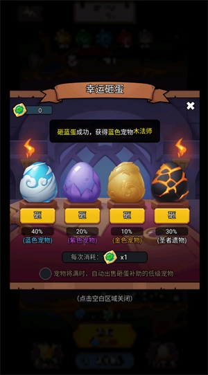 5、挑战boss成功后可以获得幸运币,可以利用游戏币抽取强大英雄