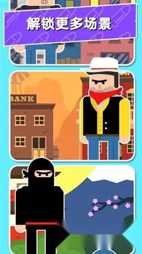 游戏提供多种武器选择和升级系统,你能按喜好定制装备。新手玩也不难,进入游戏后点击开始玩,拖动瞄准射击杀敌人就行。随着关卡推进难度升高,还能利用道具通关,每通一关获得的星星可解锁新玩法。
