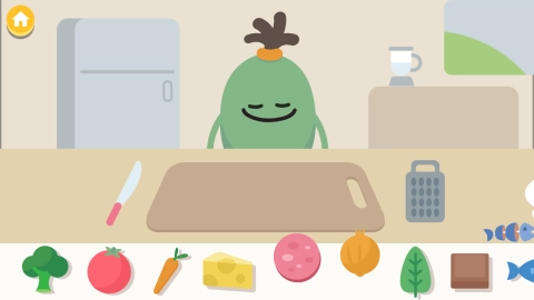 当你打开游戏,映入眼帘的是一个温馨的厨房场景。点击屏幕中间的“开始烹饪”按钮,就能进入充满童趣的料理世界。在切菜板界面,你可以从下方食材区挑选喜欢的蔬果,把它们拖到菜板上。点击左边的刀具图标后,用手指在屏幕上滑动就能精准切割食材,切好的食材会自动堆叠成整齐的样子。