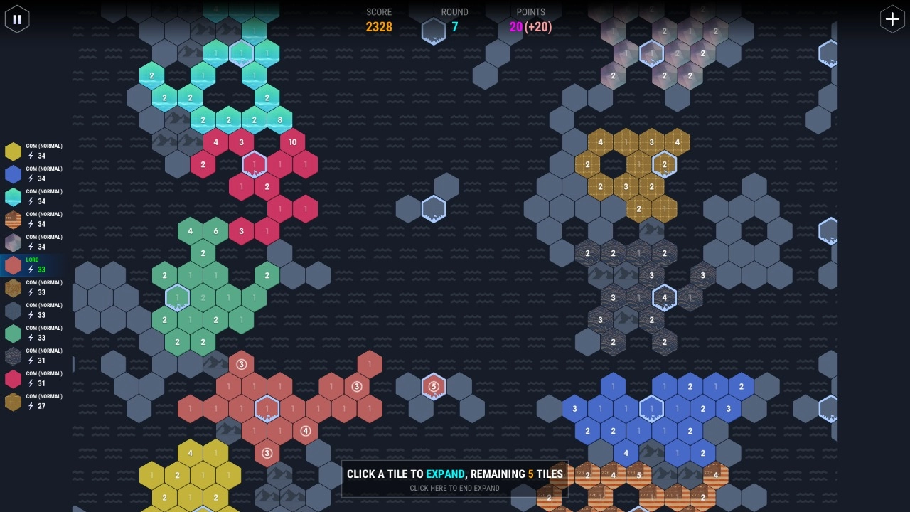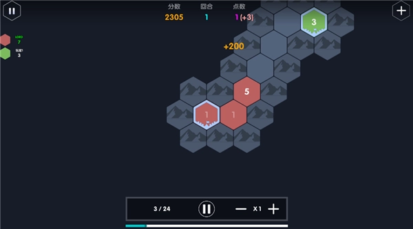 数字领主最新版采用的是回合制的玩法,你需要做的是利用数字来占领地盘,注意每回合你可以占领三块地,能够增加一块儿地上的点数五点,就相当于增加了五个兵力。场景中还会存在一些无主的地方,你可以扩张,但是离基地太远的话,就不能再扩张了,中间必须有连接的兵种才可以。