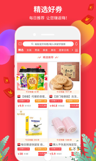 1、倘若你时常进行网购,那这款软件中存在商家设置的隐藏优惠券哦。先领取优惠券再下单购物,不仅如此,购物后的返佣额度极高,就如同在已有的折扣基础上再打一次折,简直太适合你啦!