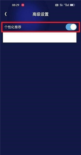 4、开启个性化推荐进入高级设置页面后,打开“个性化推荐”右侧的开关即可。