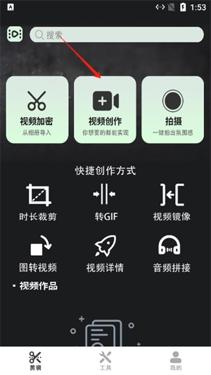 4、除了进行视频创作,还提供时长裁剪、视频镜像、音频拼接等多种创作手段。