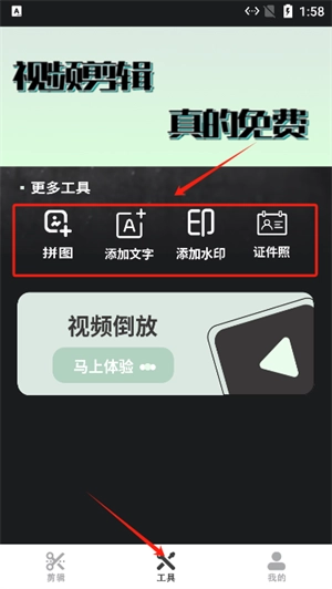 5、点击下方的工具,在工具栏中,您能够运用图片编辑工具,创作出更优质的图片。